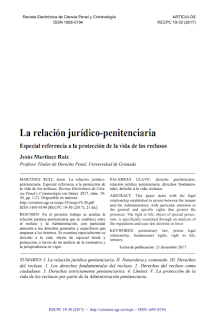 La relación jurídico-penitenciaria Especial referencia a la protección de la vida de los reclusos